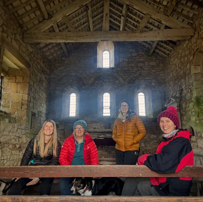 It’s my turn to host the Quickbeam practice this week, out in the Northern Fells. The kettle is on, the cake is cut and we’re gathered round the coffee table to finalise our set for Cumberlandia 2025. We started to design our song & story cycle at the turn of the year. This picture was taken in The Chancel, Ireby after spending a February weekend together during which we talked, sang, walked, danced (and laughed) the Cumberlandia set into being.